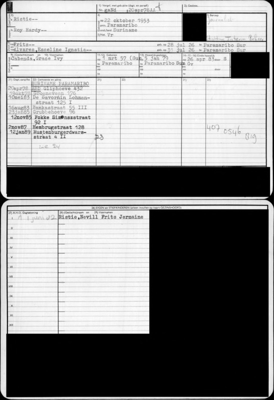 Persoonskaart Roy Hardy Ristie